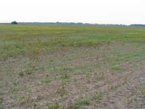 Early season dry conditions also inhibited nodulation, so several factors came together to cause these symptoms: a large demand for N, limited available soil N due to excess moisture, and insufficient biological N fixation. Fields that were well drained and did not suffer from further heavy rainfall events recovered nicely, as can be seen (see Figure .3). In season nitrogen fertilizer application did not provide enough yield to cover the cost of the fertilizer.
