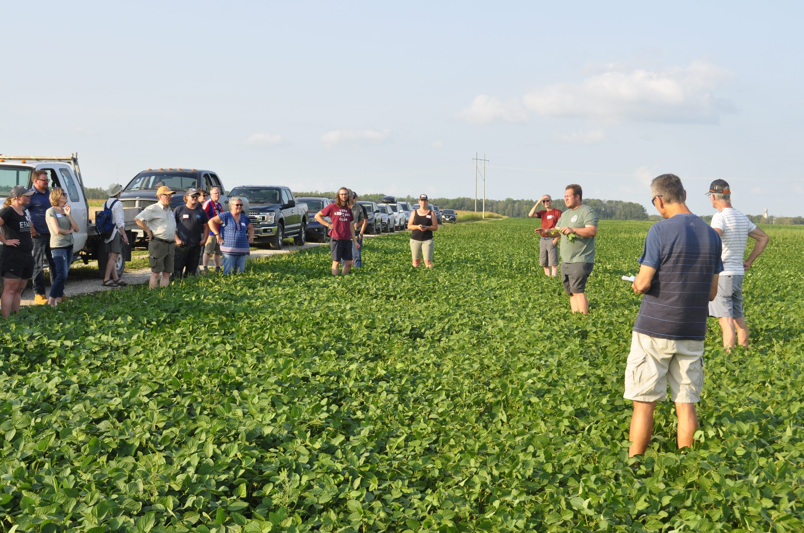 In 2021, Brett planted cereal rye in the fall, let it overwinter, and then cut the rye for forage before heads formed. He then ran a high-speed disc over the field and immediately planted soybeans at a rate of 350,000 seed/acre.
