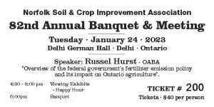 The guest speaker this year will be Russell Hurst. The proposed title of his talk is “Overview of the federal government’s fertilizer emission policy and its impact on Ontario agriculture”.