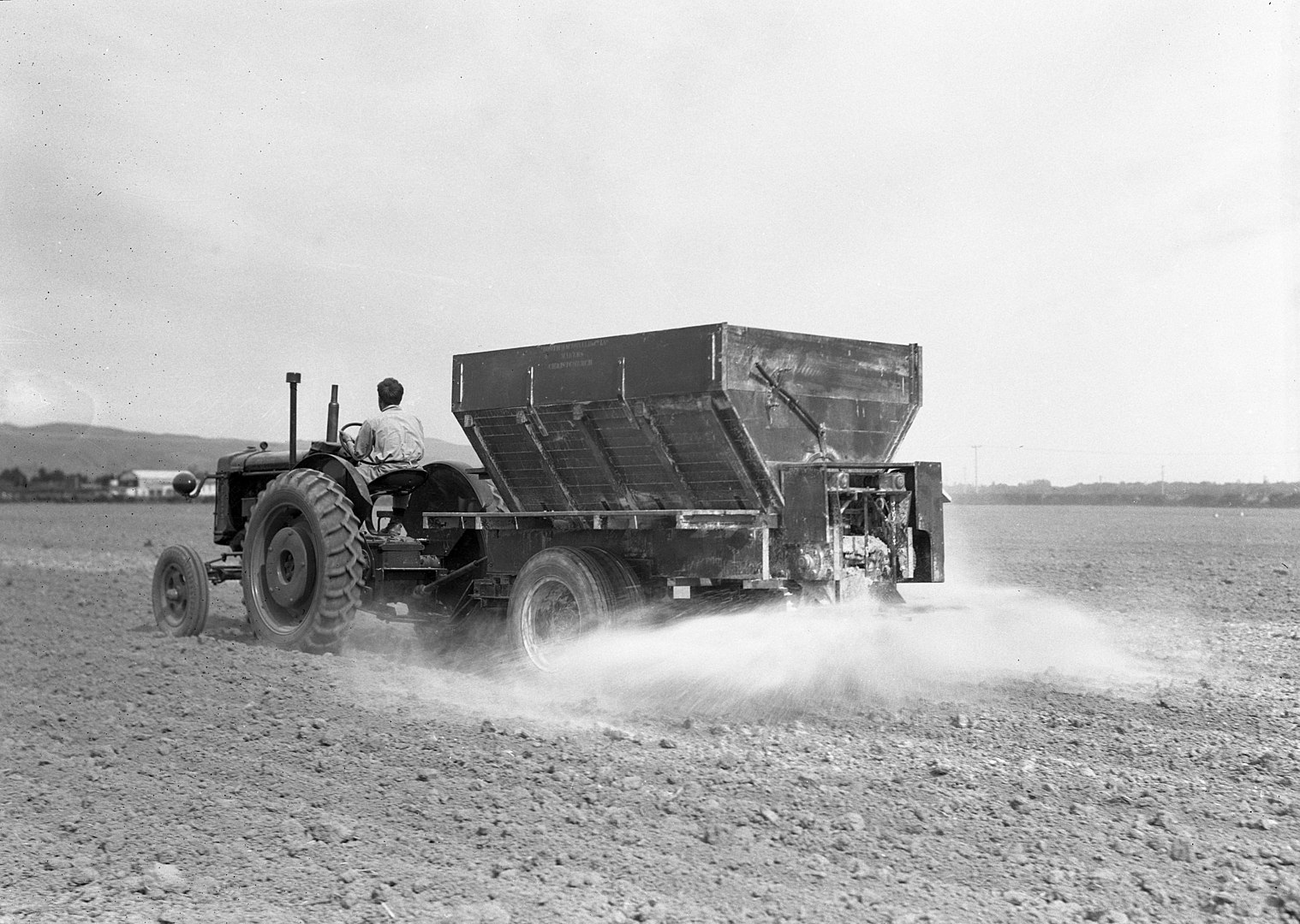 Black and white image of lime being spread in 1949 By Ron C. Blackmore – https://livingheritage.lincoln.ac.nz/nodes/view/7251, CC BY 3.0, https://commons.wikimedia.org/w/index.php?curid=84848848