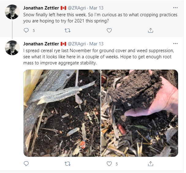 Heat – The late May 2021 frosts in parts of the province are providing an indication that some management practices may lend themselves to increased risk of spring frost? Or maybe delayed planting means risk of fall frost? How do you mitigate the risk of these events from occurring? Will the species in question warm up the soil, or act as a cold, wet blanket, increasing the risks?