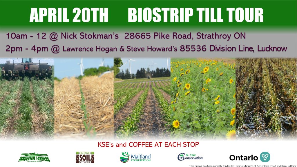 STRATHROY: Join OMAFRA, OSN, IFAO and the St. Clair Region Conservation Authority for the first stop on this Spring’s Bio Strip Cover Crop Tour at Nick Stockman’s farm.