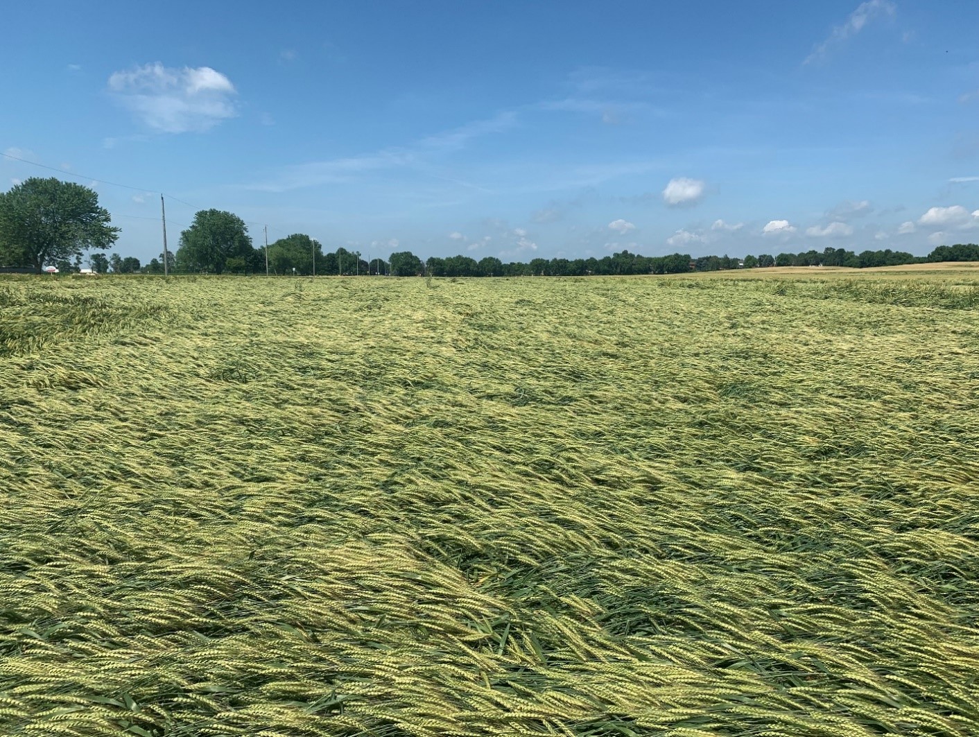 The recent rainfall over much of the province was welcomed and appreciated by many. However, the heavy rain and winds proved to be a tipping point for some winter wheat with lodging occurring in all or parts of fields. While some wheat has managed to stand back up, the wheat remains flat where the lodging is severe (Figure 1). For those who may have never experience lodged wheat here are a few things to keep in mind as harvest begins in the most southern part of the province.