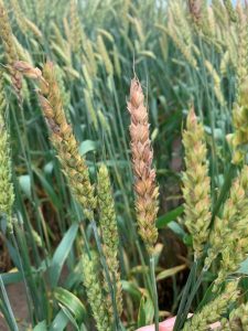 Figure 2. Fusarium head blight infection in winter wheat that was not sprayed with a T3 fungicide.