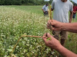 Local growers, members of the Essex Soil & Crop Improvement Association, partnering agronomists, University of Windsor environmental researchers, and the Essex Region Conservation Authority gathered on August 1 for a Cover Crop information event at the ERCA’s Demonstration Farm. Cover crop demonstrations included a variety of species and mixes. Dr. Katie Stammler, ERCA’s Water Quality Scientist spoke about local and Great Lakes water quality and why cover crops are an important BMP to help reduce phosphorus. Michael Dick, Agricultural Technician for the Essex Region Conservation Authority (ERCA) and secretary-treasurer for Essex Soil and Crop, discussed some of the challenges experienced in establishing good yet manageable stands on the farm’s heavy clay soils. Chris Snip, certified crop advisor with Agris Cooperative’s Cottam location, joined the discussion as an agronomist who supports the research plots. Two University of Windsor professors – Dr. Catherine Febria and Dr. Cameron Proctor were on hand to share their research plans on carbon sequestration and soil health and to learn from local farmers.