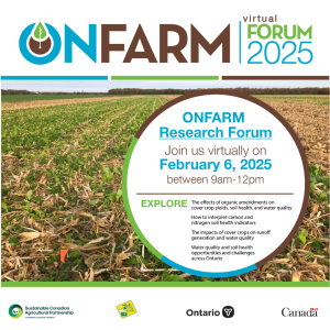 2025 ONFARM Virtual Research Forum is an OSCIA recognized Knowledge Sharing Event (KSE) for farmers with On-Farm Climate Action Fund (OFCAF) projects in the Cover Cropping category