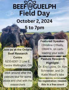 Beef @ Guelpoh is hosting a field day at the Ontario Beef Research Centre on October 2, 2