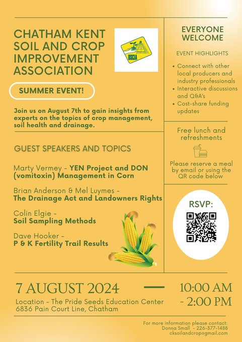 For more information, please contact Donna Small (cksoilandcrop@gmail.com 226-377-1488 or Derrick LeClair (rocky_darrly@hotmail.com 519-401-9120)