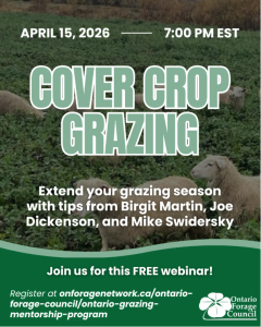 Find out how to extend your grazing season with cover crop grazing. This webinar features Ontario Grazing Mentors Birgit Martin, Joe Dickenson, and Mike Swidersky