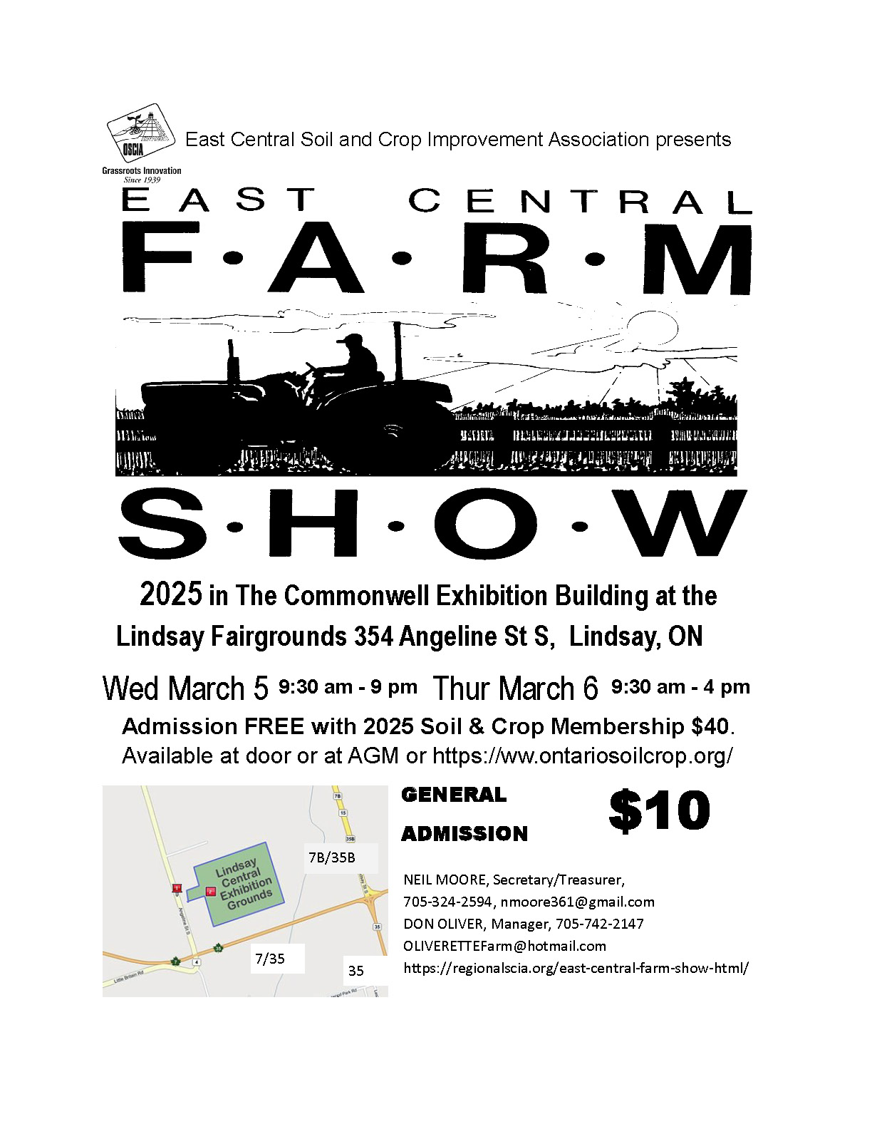 « All Events This event has passed. East Central Farm Show March 5 @ 9:30 am - March 6 @ 4:00 pm « Profitable Pastures Webinar Series Profitable Pastures Webinar Series » Free for 2025 OSCIA members Add to calendar Google Calendar iCalendar Outlook 365 Outlook Live Details Start: March 5 @ 9:30 am End: March 6 @ 4:00 pm Website: https://regionalscia.org/east-central-farm-show-html/ Event Category: East Central Organizer East Central SCIA Website: View Organizer Website Venue Lindsay Fairgrounds Lindsay, ON Canada + Google Map