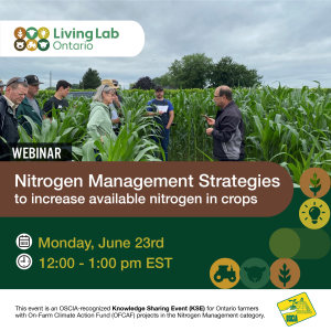 Nitrogen Management Strategies to Increase Nitrogen Availability in Crops is an OSCIA-recognized Knowledge Sharing Event (KSE) for farmers with On-Farm Climate Action Fund (OFCAF) projects in the Nitrogen Management category.