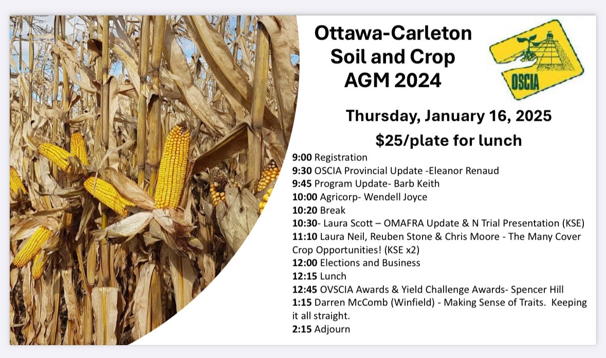 Ottawa-Carleton SCIA AGM is an OSCIA recognized Knowledge Sharing Event (KSE) for farmers with On-Farm Climate Action Fund (OFCAF) projects in the Nitrogen Management, Cover Cropping and Rotational Grazing category