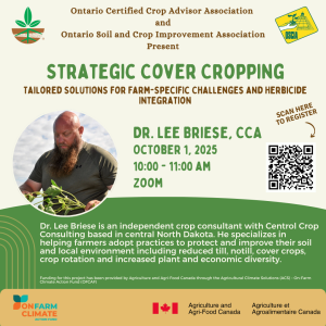 The Ontario Certified Crop Advisor Association (CCA) and Ontario Soil and Crop Improvement Association (OSCIA) have partnered to deliver training and educational resources to Ontario agrologists. With a focus on cover crops, nitrogen management, and rotational grazing, these sessions will support the objectives of the On-Farm Climate Action Fund. Check out the full webinar series schedule here.