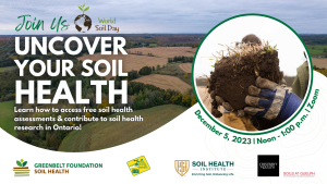 Celebrate World Soil Day on December 5th by diving into the exciting research underway at the Greenbelt Foundation, Soil Health Institute and University of Guelph aimed at transforming the way farmers measure and manage soil health in Ontario. Learn how you can get involved and access free soil health assessments for your farm.