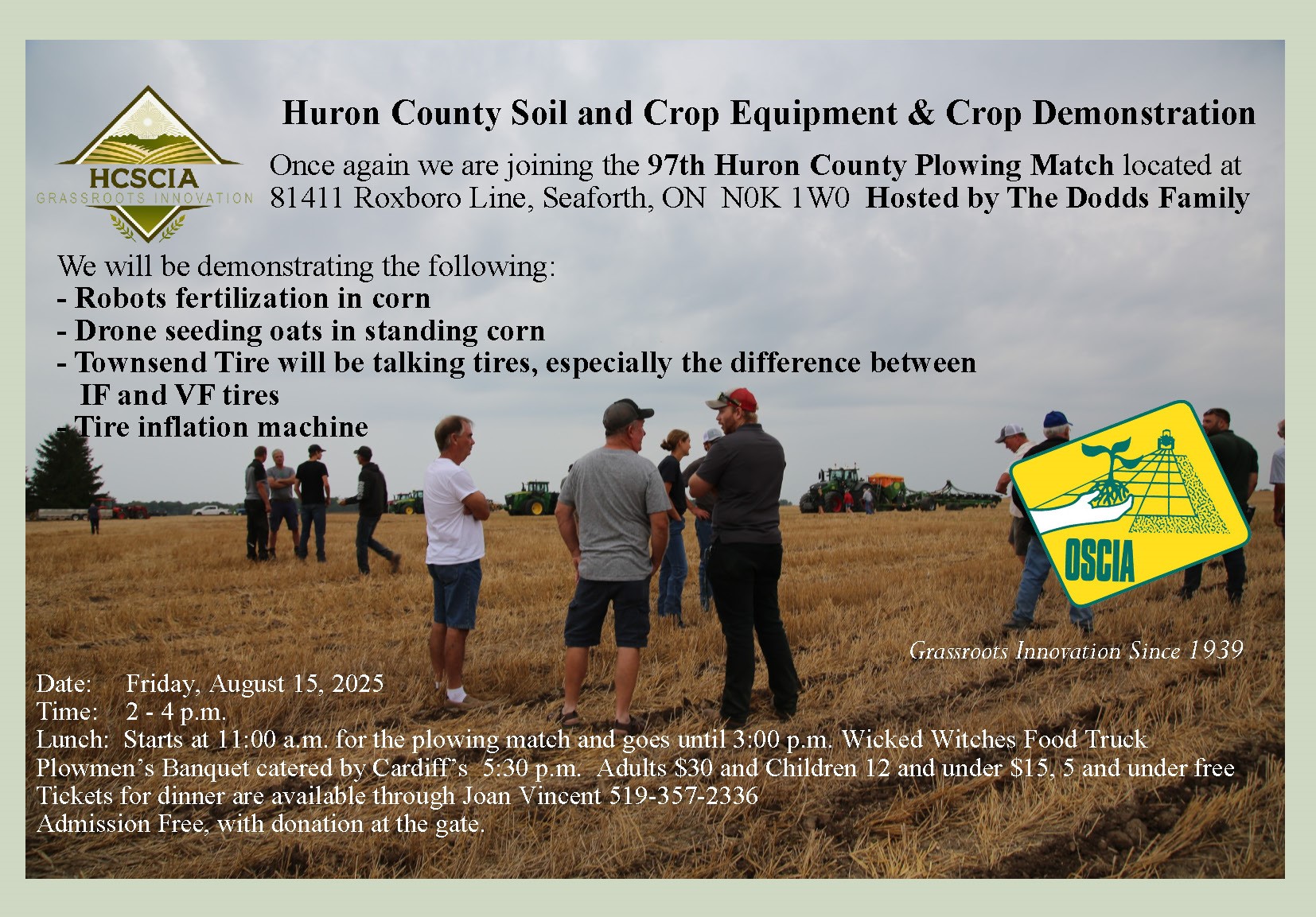 ![]() 97th Huron County Plowing Match hosted by The Dodds Family Friday, August 15 from 2-4pm. Free admission (with donation at the gate)Location: 81411 Roxboro Line, Seaforth, ON N0K 1W0Demonstrations of robots fertilization in corn, drone seeding oats in standing corn, Townsend Tire representative with a tire talk and moreLunch by Wicked Witches Food Truck included […] |