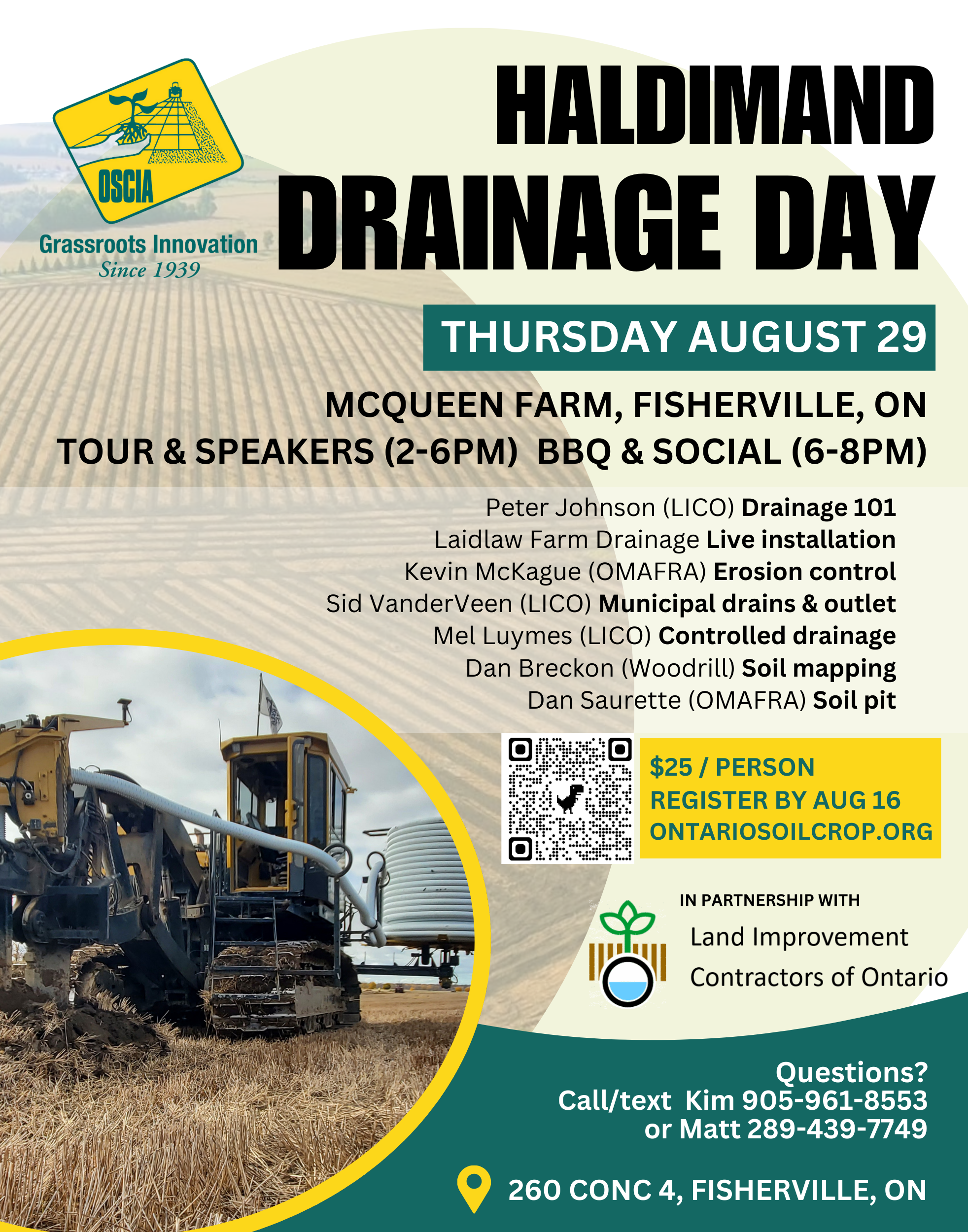 McQueen Farms 260 Concession 4, Fisherville, Ontario, CanadaPlease join us for Drainage Day Cost $25, to be paid at the door. Tickets are limited. Preregistration required by August 16th or until sold out!
