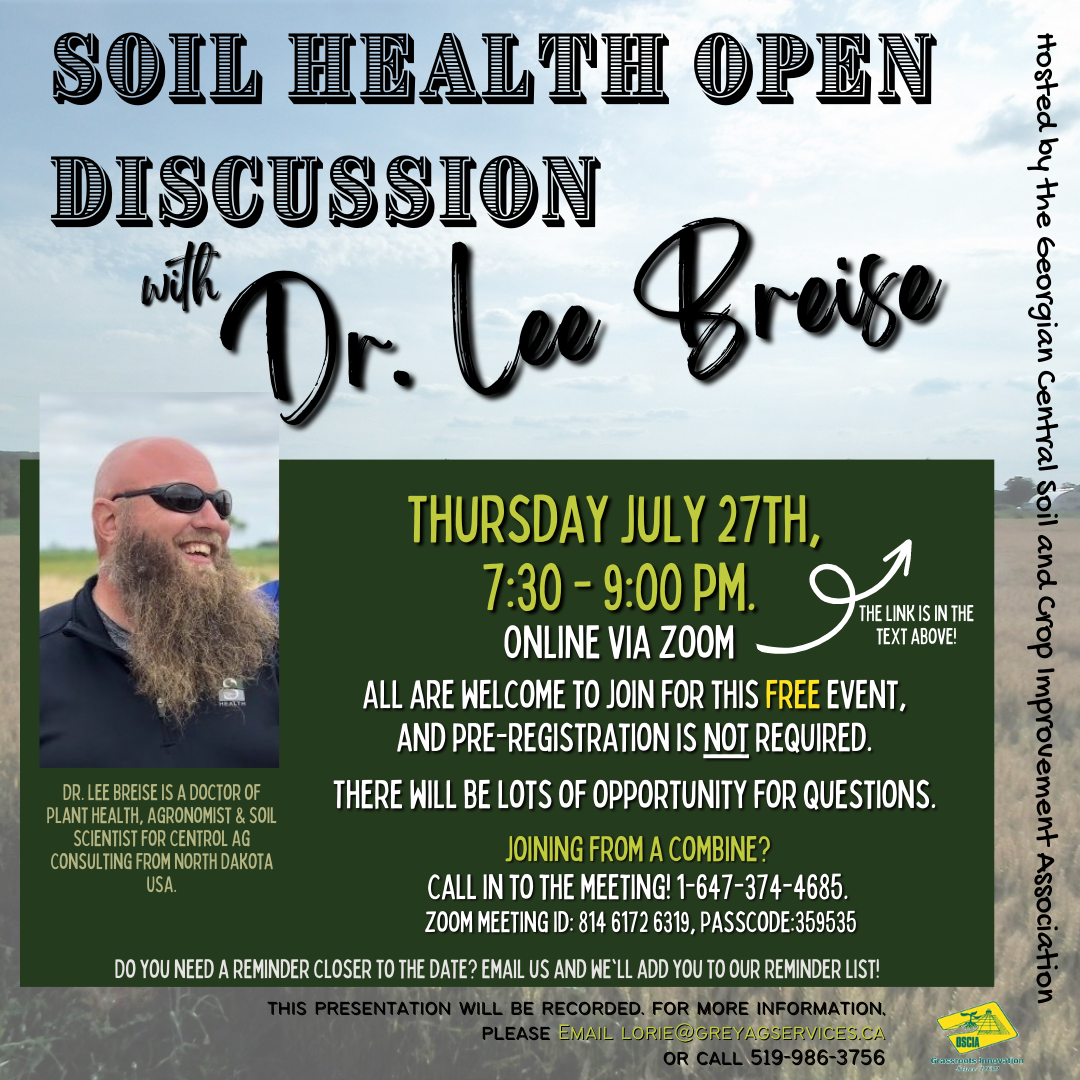 Join Georgian Central Region for an open discussion night with Dr. Lee Breise on Thursday July 27th 2023 from 7:30 - 9:00 pm. All are welcome to join this free online event! Dr. Lee Breise is a doctor of plant health, agronomist and soil scientist for Centrol Ag Consulting from North Dakota USA. There will […]
