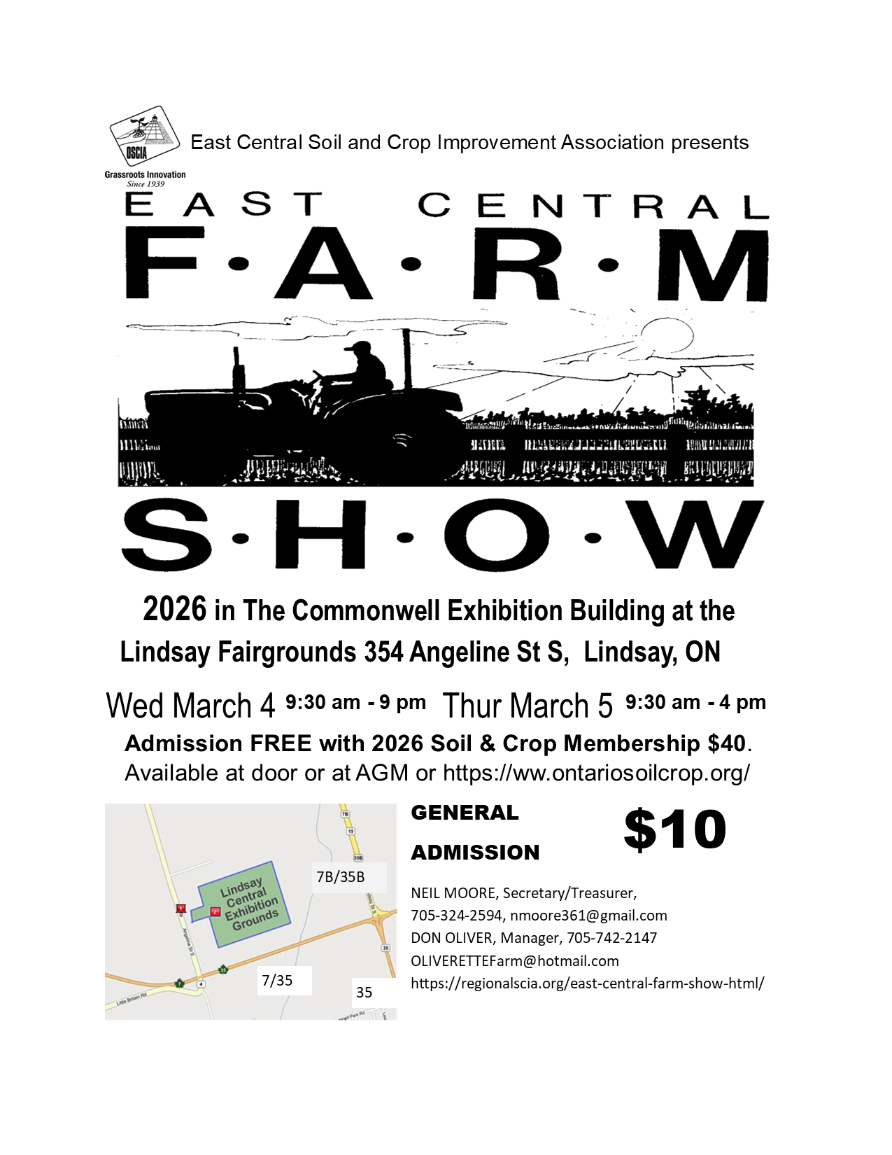 East Central Soil and Crop Improvement Association 45th East Central Farm Show in the Commonwell Exhibition Building 2026 Soil and Crop members FREE |