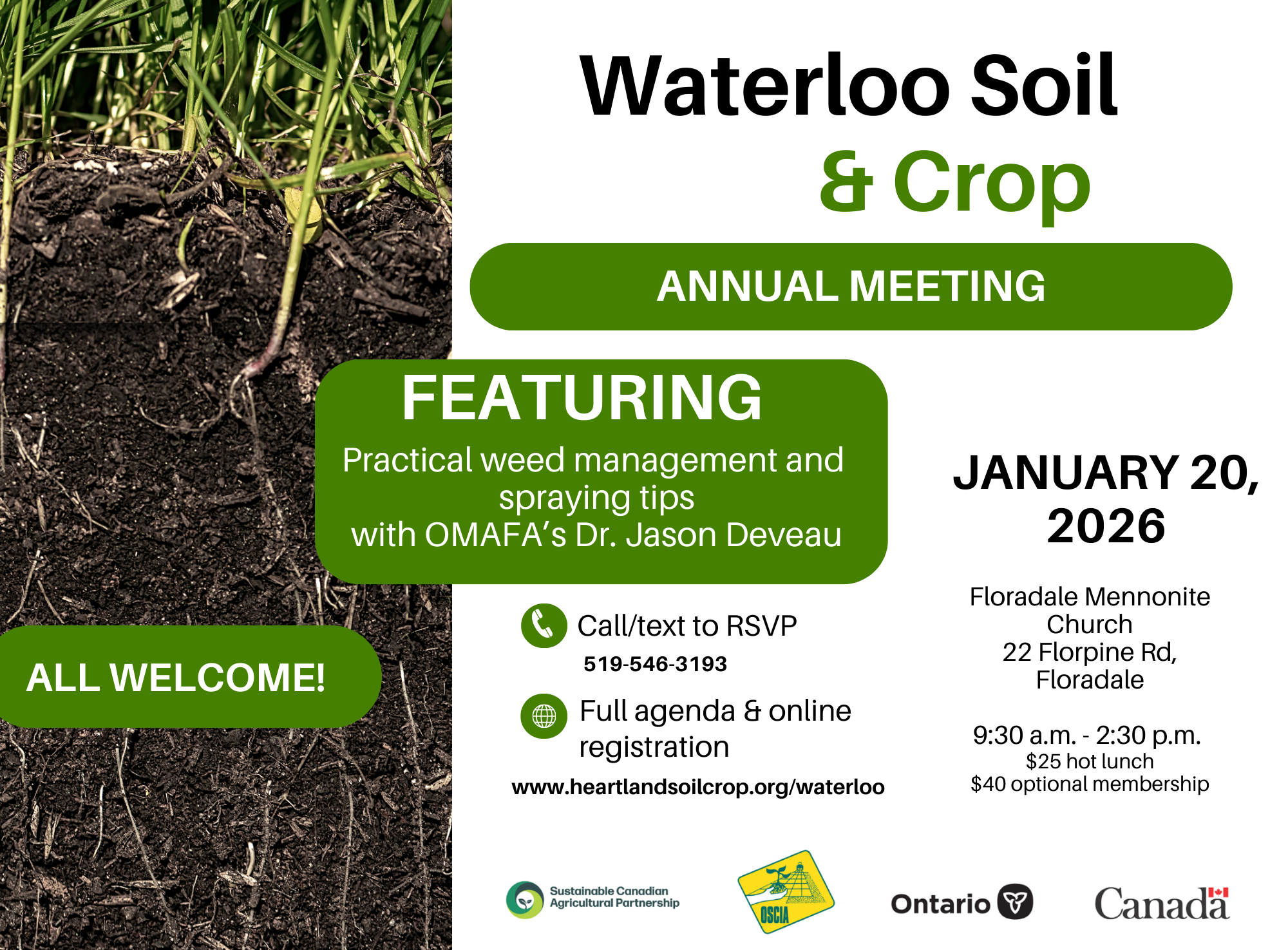 Burford Ag Hall 6 Park Ave, Burford, ON, CanadaWe are pleased to announce that our Annual General Meeting will be held on Thursday January 22, 2026 at the Burford Ag Hall. If you have any questions please contact Linda Snyder at 519-759-4232, or at brantsoilandcrop@gmail.com.