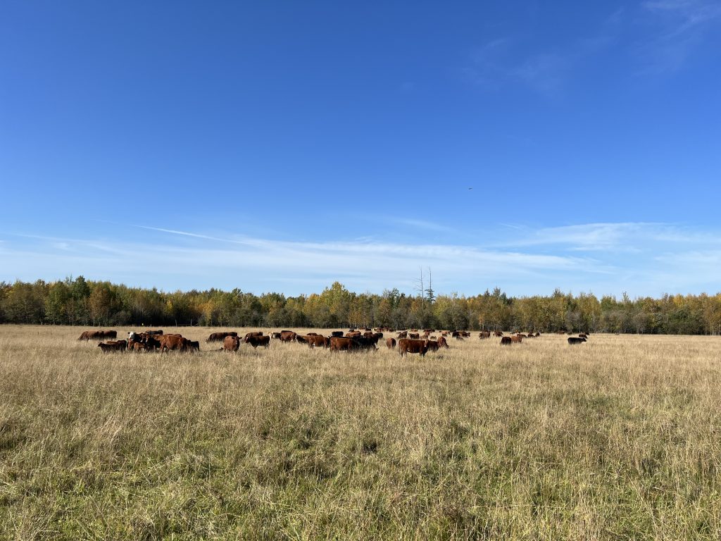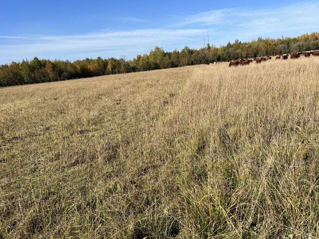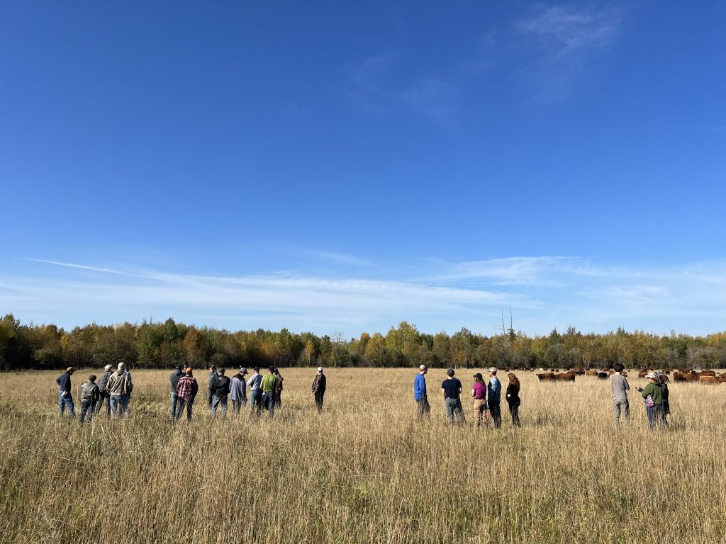 Extending the grazing season in Northern Ontario can be tricky, with shorter growing seasons and the possibility of early snow in the fall months. Beef Farmers of Temiskaming gathered for an educational morning at the farm of Brad Noyes and family on September 30th, 2023 to learn about some extended grazing practices that could be effective in Northern Ontario. Joining the group was Mike Swidersky, manager for the Dufferin/Grey community pasture and expert grazer, as well as Jim Johnston, local “grazing guru”.