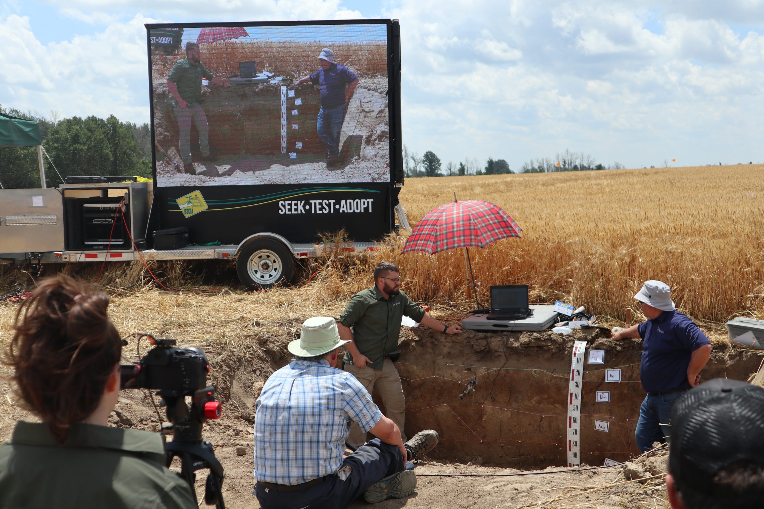 Live from the soil pit with the MSTS LED screen, Ted Taylor provides an opportunity to view various soil structures up-close.
