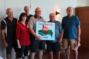 Essex Soil and Crop held their Twilight Tour on August 10th at Cooper’s Hawk Vineyards in Harrow. Cooper’s Hawk Vineyards were also the 2021 Essex Conservation Farm Award Winner (see photo of sign presentation at left showing owner, Tom O’Brien with partners/staff on left and ESCIA President, Marc Rivest and ESCIA Secretary, Michael Dick on right)! Attendees enjoyed a wonderful sit down dinner (and some exceptional wine, of course) and then took a wagon tour of a constructed wetland on the vineyard property plus an informative tour of the winery and the wine making process.