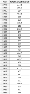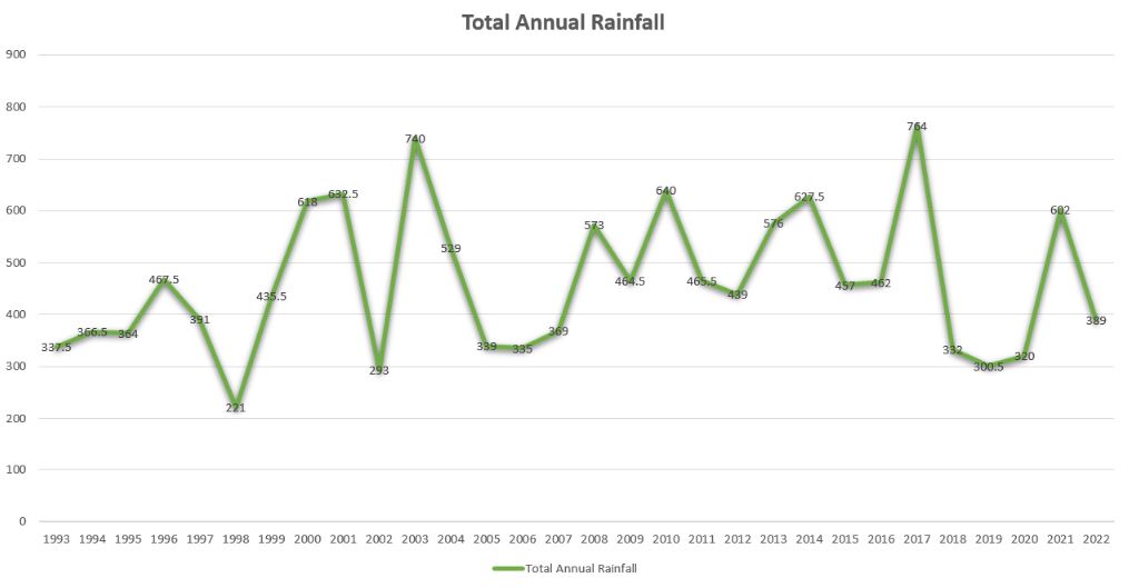 Annual rainfall measured in mm.