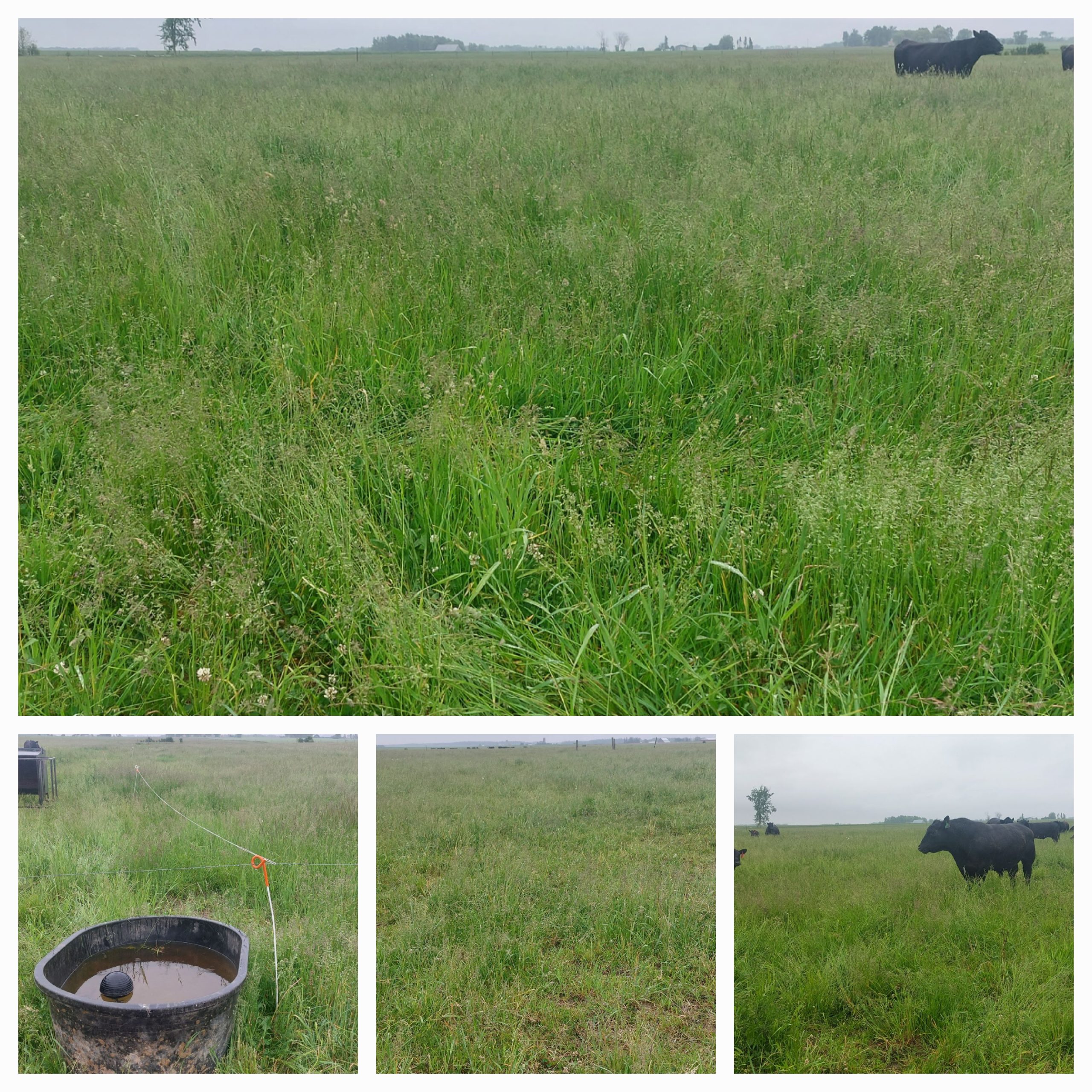 Their cattle are rotationally grazed on 0.6 acres per day in groups of 25 or 30 cow calf pairs. They have a 30 day rest period for each pasture in the system, and altogether 50 pairs will cover about 40 acres. Pam does a lot of the cattle moving, as Terry also hauls grain full time, year round. They have a piping system to take water to the field, and portable poly troughs that service multiple paddocks and are moved every eight days using a side-by-side. Right now, they are involved in a study with the University of Waterloo which is looking at the effect of rotational versus continuous grazing practices on water quality.