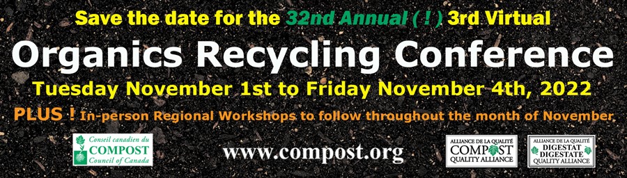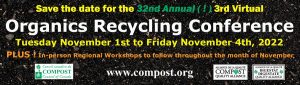Organics Recycling Conference Nov 1-4, 2022 0 The agenda is attached at this link. Registration for the event is found here.