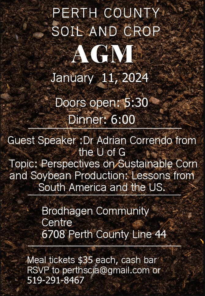 Join the Perth County SCIA for their AGM on January 11th, 2024. The event will take place at Brodhagen Community Centre – 6708 Perth County Line 44.