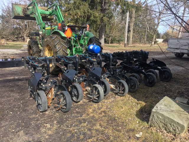 A: In 2022 we purchased a used 6 row Dawn Pluribus strip till unit without fertilizer. It is fairly heavy on the three point hitch of our 90 HP tractor, but we were pleased with the job it did. On our clay loam soils, we found that when the soil was fit in the spring, making the 6-8″ strip warmed the soil and made a good seedbed to plant into. Strips were made into cover crop oats, and soybean stubble. We tried making straight rows with our GPS autosteer but ended up putting a simple bar on the front of the tractor with a chain hanging down on the last strip made for a marker. When it came time to plant, we found that it didn’t matter if the rows were perfectly straight because if we drove the planter tractor between the strips, the planter followed on the strips anyway. The strip tiller saves fuel, time, reduces erosion, and saves disturbing the soil on over half of the field. We used to offset disc fields going into corn in the fall and cultivate them in the spring. We are looking forward to cleaner snowbanks this winter!