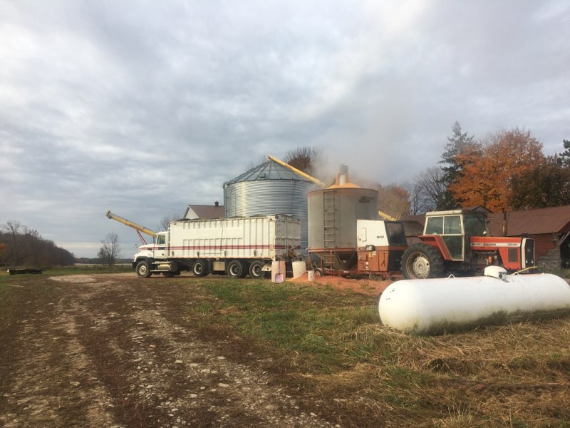 We are thinking about building more grain storage as this is sometimes a weak link. Presently we have one bin that holds 260 tonnes. We fill it with wheat off the combine and have it empty for soybeans. We then put our beans in the bin and try to have them gone by corn time however that is getting harder to do with truck shortages, record Ontario crops and elevators filling up. If we had more storage, combining could continue during good weather. We have an older feed truck that can haul 25 tonnes of grain to local elevators, but I like to concentrate on getting the crops in the bin and let bigger custom trucking companies haul crops to market.