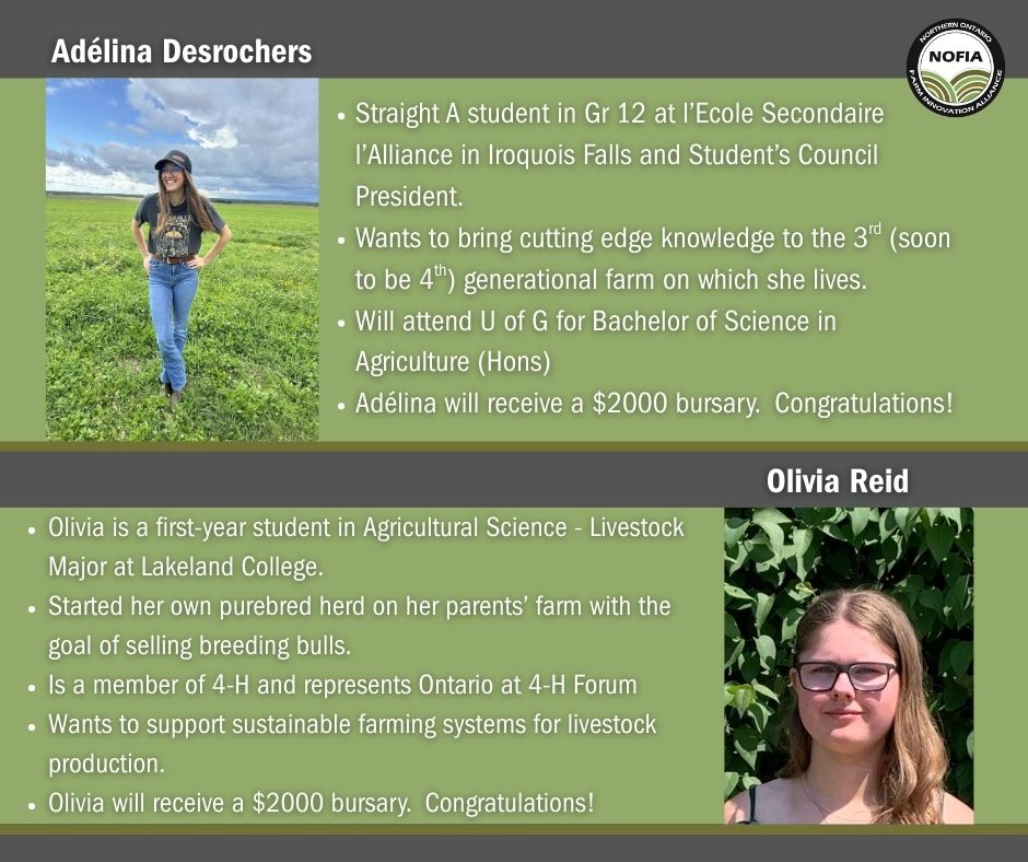 Northern Ontario Ag Conference – Award Winners 2026 0 NORTHERN ONTARIO AG CONFERENCE AWARD WINNERS Student Research Posters Student Bursuries Innovative Northern Farmer