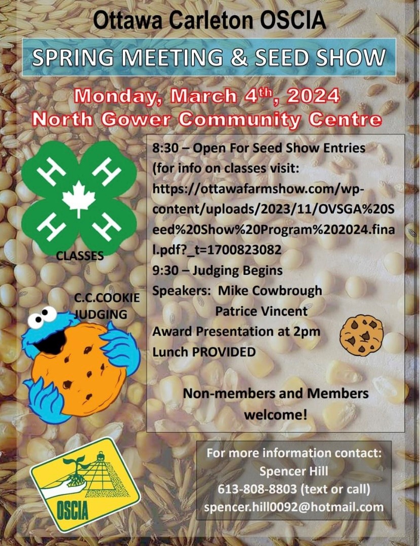 North Gower Community Centre 2330 Community Way, North Gower, CanadaThe Ottawa Carleton SCIA annual seed show is being held Friday March 7th at the North Gower community center. All are welcome to attend! Please find the attached poster for details. Reminder: If you have not yet renewed your membership, please renew online or in person at the seed show. You must be an active […]